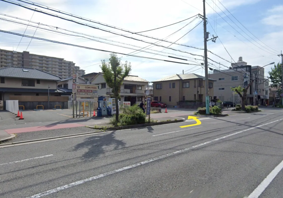 当社ビルより東側へ30M(黄色い看板が目印)