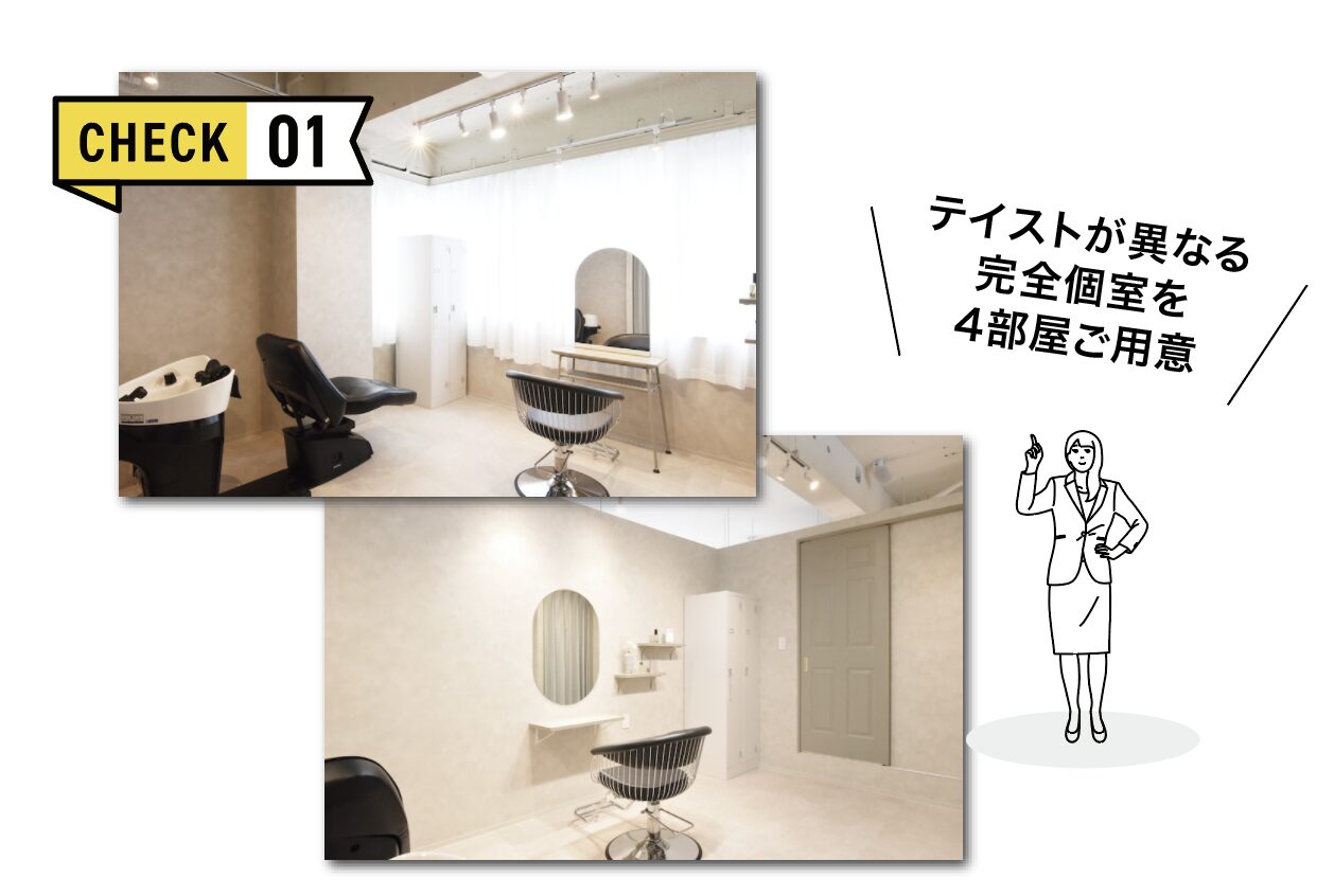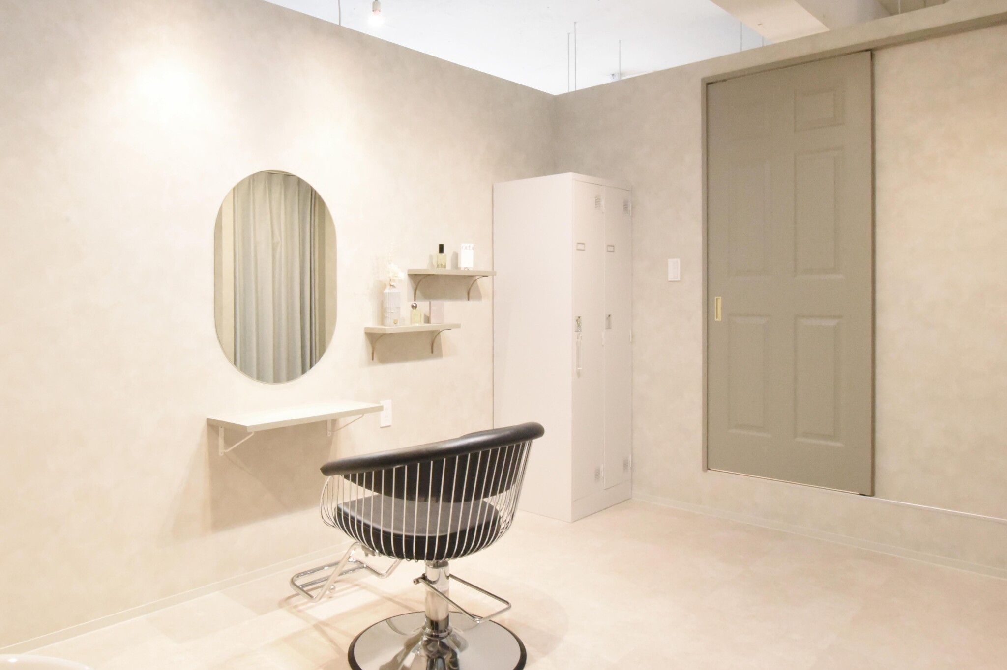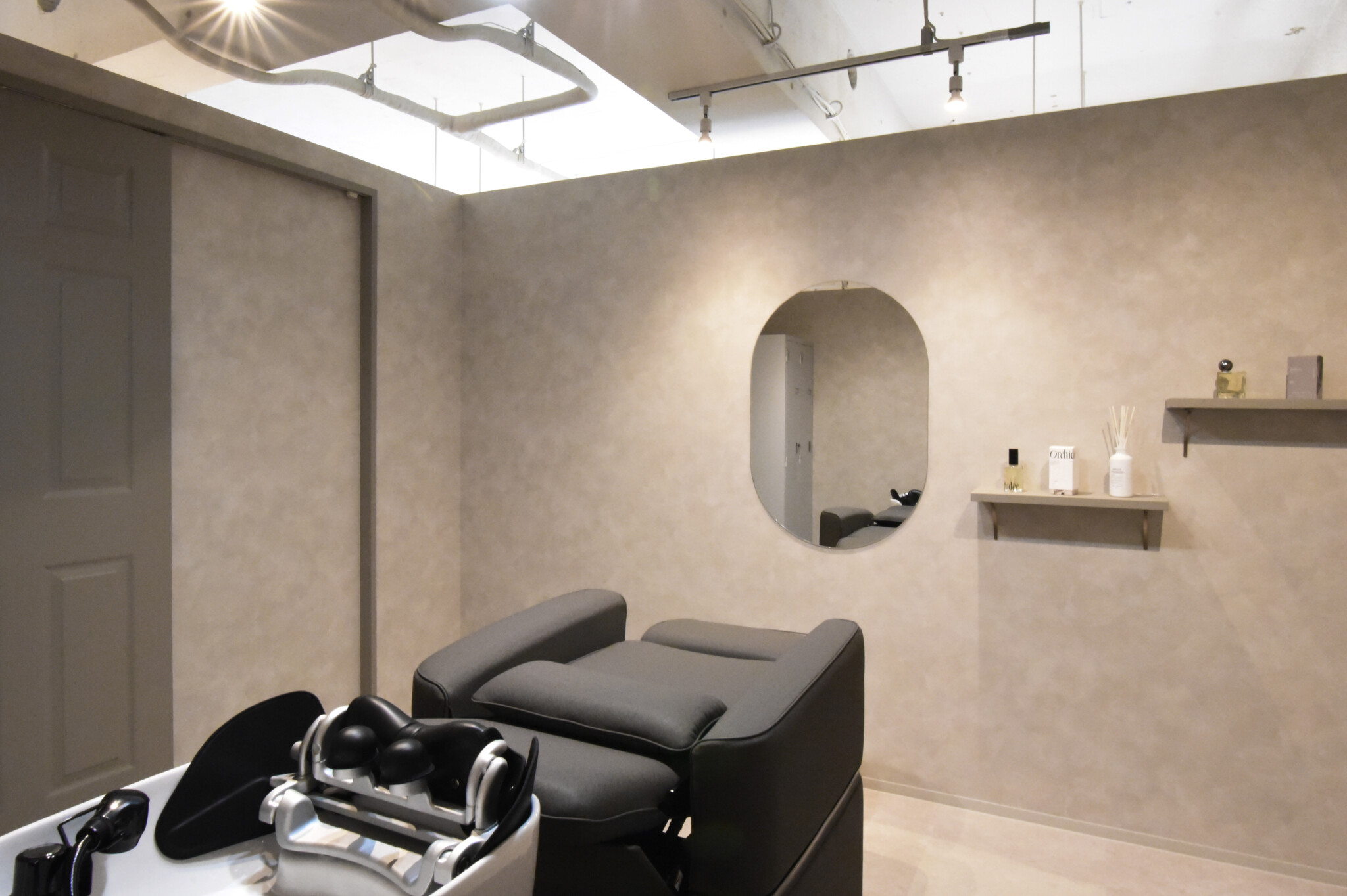 近年、完全個室サロンは増え始めているが、個室内にシャンプー台がある店舗は、まだ珍しい。個室内にシャンプー台を設ける事でよりプライベート感を後押ししている。