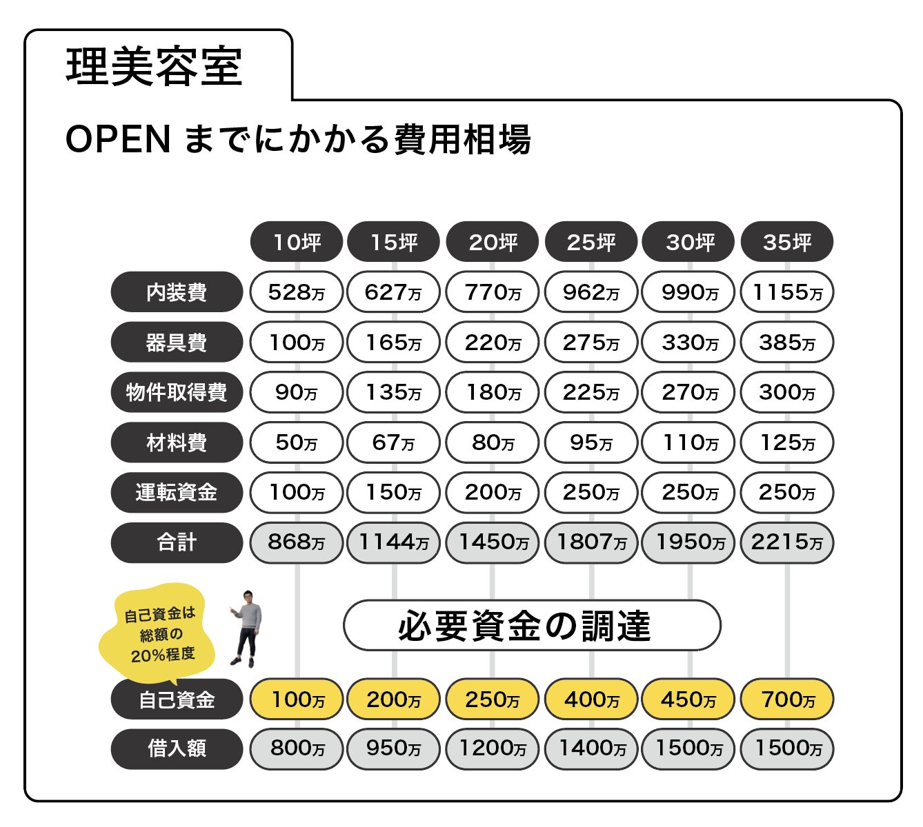 開業資金総額=お店の広さに比例します。